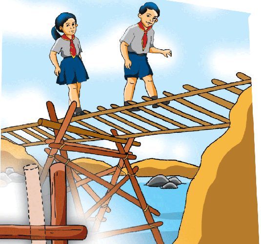 ඔබ ඉදිරියේ ඇති තරණය කළ යුතු බාධකයේ පළල අඩු නම් ඒ සඳහා තෝරා ගත යුත්තේ &ඒකීය අගුලු* පාලමයි. ඒ සඳහා පාලම් පාද දෙකක් සහ ශක්තිමත් ලී දඬු තුනක් ප්රමාණවත්ය. මෙහි දැක්වෙන රෑපයේ එම ලී දඬු ස්ථාන ගත කළ යුතු ආකාරය පෙන්වා ඇත. පාලම මතින් ගමන් කිරීමට බාලදක්ෂ ක්රමයට සැකසූ &ඒ දණ්ඩක්* යොදා ගත යුතුය.