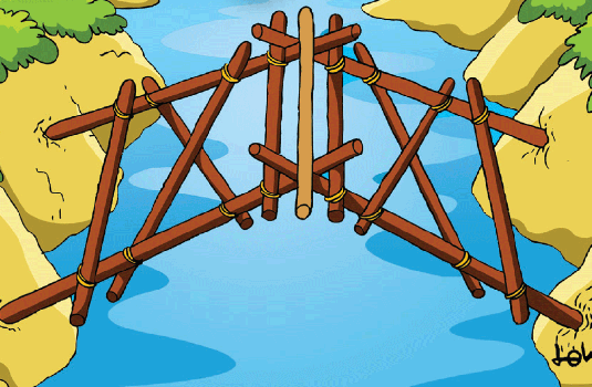 නිවැරදිව පාලම් පාදයක් සකස් කරගන්නා ආකාරය මෙහි දක්වා ඇත. ඔබ සතුව ඇති ලී දඬු මෙම ආකෘතියේ දැක්වෙන අයුරින් ස්ථානගත කොට එහි මැදට කතිර බැමම්ත්, ඉතිරි සියලු ස්ථානවල හතරුස් බැම්මත් යෙදිය යුතුය.