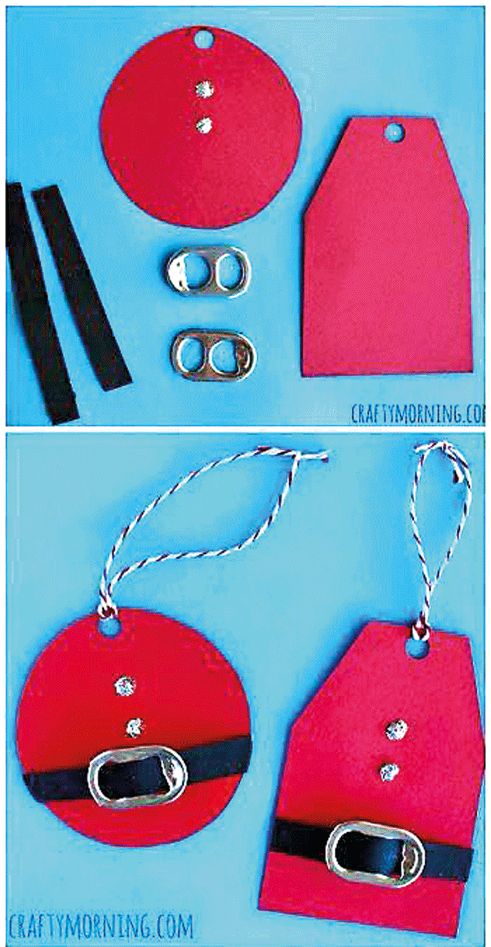 නත්තල් සීයාගේ ඉණපටියේ ඉදිරිපස හැඩය කාඩ්බෝඩ් කැබැල්ලක මෙසේ එල්ලා තැබිය හැකිය.