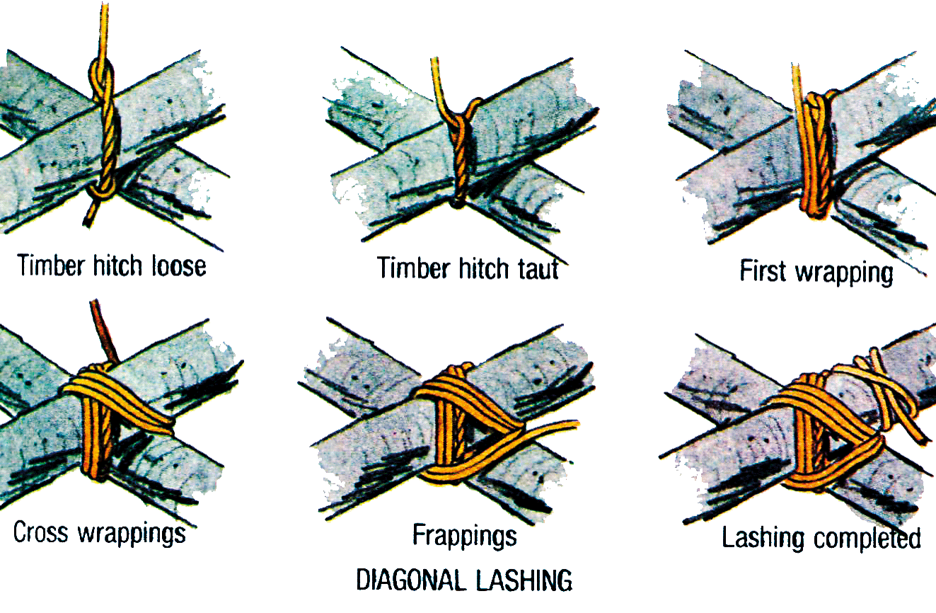 අඩි 10 ක් උස ශක්තිමත් ලී දඬු හතරකින් කතිර දෙකක් සකසා ගත යුතුය. කතිරය මැද්දට කතිර බැම්ම යෙදිය යුතුය. (කතිර බැම්ම යොදන ආකාරය පහත දක්වා ඇත.) කතිරය සිරස් අතට පොළොවේ සිටුවා පහළ කොටස ඉණිමගක් ලෙස ප්රයෝජනයට ගත යුතුය. ඒ සඳහා බාලදක්ෂ යෂ්ටි කිහිපයක් තිරස් අතට බැඳිය හැක.