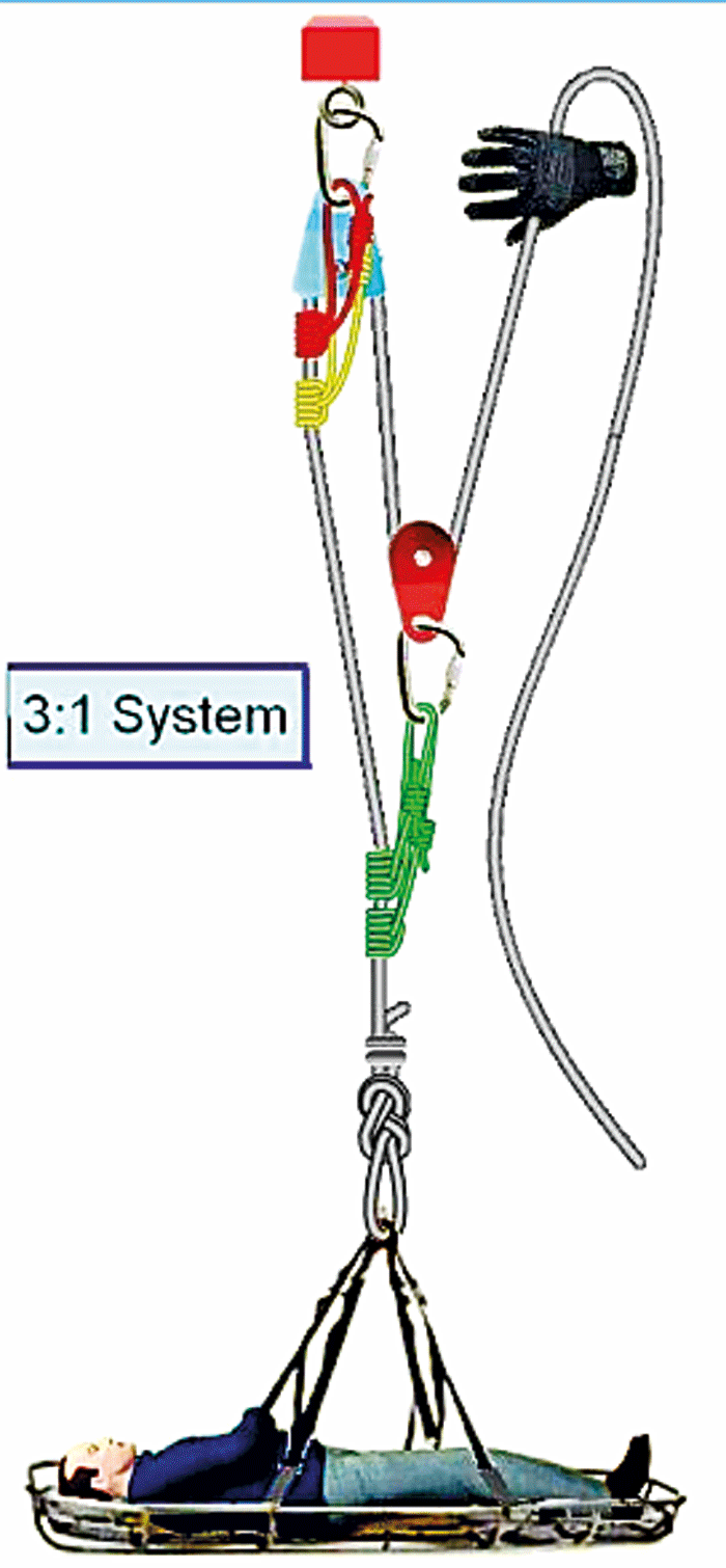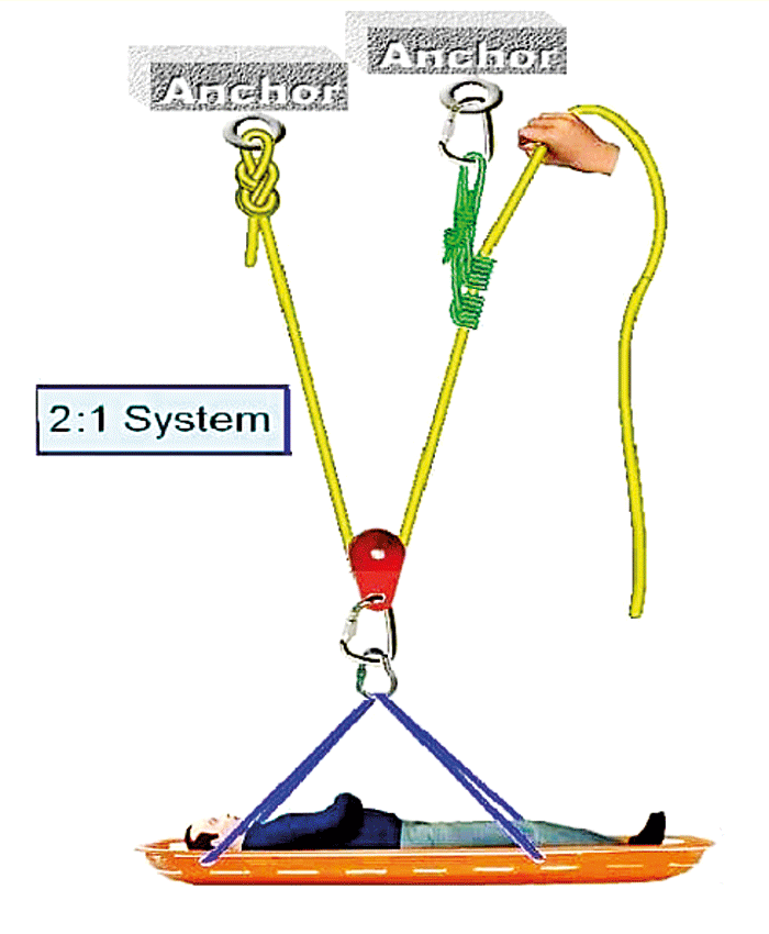 මෙහි දැක්වෙන්නේ උස ස්ථානයක සිට පහත ස්ථානයකට ආරක්ෂිතව භාණ්ඩයක් හෝ රෝගියකු රුගෙන යන අන්දමයි.