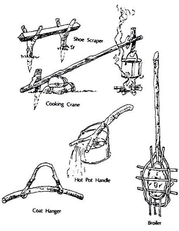 මෙම කාලීන උපකරණ කිහිපය එළිමහන් බාලදක්ෂ කඳවුරේ මුළුතැන්ගෙට ප්රයෝජනවත් වෙයි. පළමුවෙන්ම Y හැඩැති ලී කරැ කිහිපයක් පේර ගසකින් කපාගත යුතුය. ඉන් කිහිපයක් පොළොවේ ගිල්විය හැකි වන සේ උල් කර සකස් කළ යුතුය. එසේ සකස් කළ ලී කරැ රෑපයේ දක්වා ඇත. දොඹකර උදුනක් පිළියෙළ කිරීමේ දී ලී කරැ භාවිත කළ යුතු අන්දම බාලදක්ෂයා ප්රායෝගිකව අත්හදා බැලිය යුතුය. ඒ සඳහා මෙහි දැක්වෙන රෑප සටහන් ප්රයෝජනයට ගත හැකිය. යම් ආහාරයක් ගිනි අඟුරැ මත තබා රෝස් කරගැනීමට අවැසි වූ විට Y හැඩැති කරැවට අමතර කොටස් කිහිපයක් එක්කොට රෑපයේ දැක්වෙන ආකාරයට බැඩ්මින්ටන් පිත්තක් ලෙස එසේ කරගත යුතුය. එහි දැල විවීම සඳහා සිහින් ශක්තිමත් පේර කෝටු හෝ වෙනිවැල් භාවිත කළ යුතුය. මුළුතැන්ගෙයි ලිප මත රත්වූ ජලය සහිත බිලී කෑනයක් ඉවත් කිරීමට Y හැඩැති ශක්තිමත් ලී කරැවක් ප්රයෝජනයට ගත හැකි ආකාරය මෙහි දක්වා ඇත. එහි මිට ප්රදේශයේ හරි මැදින් කොටසක් ඉවත් කර කට්ටයක් කපා ඇත්තේ බිලී කෑනයේ යකඩ කොක්ක රඳවා ගැනීමටය.