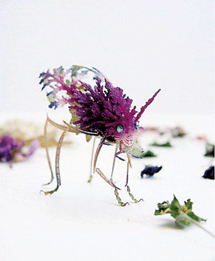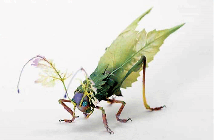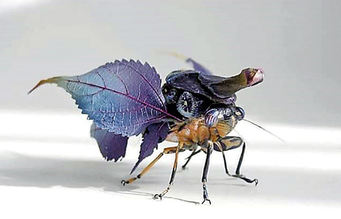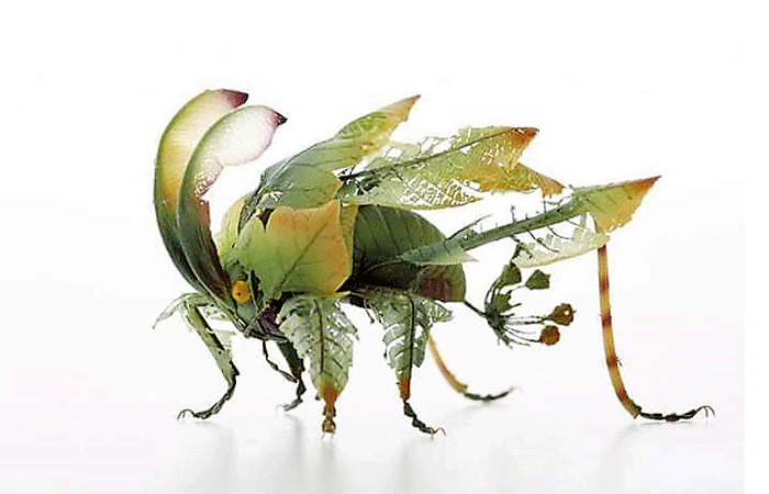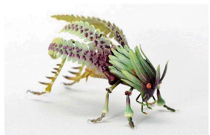 කොහොඹ, වැල්දොඩම්, මිදි, පුනීල, දාස්පෙතිය, අඹ සහ ඔබ කැමති ඕනෑම ශාකයක විවිධ වර්ණයෙන් යුතු දලු වඩාත් සුදුසුය. මෙහි දැක්වෙන රෑප කිහිපය දෙස හොඳින් බලන්න. ඒවාගේ ඇති කෘමි සතුන්ගේ හැඩ ඉතා පදක්කම ලෙස ඉස්මතු කර ඇත්තේ ශාක පත්ර වලින් හා දලු වලින්ය. ඒවා වඩාත් සුදුසුම ස්ථානයේ ස්ථානගත කොට හොඳින් ඇලවෙන ගම් වර්ගයකින් ස්ථාවර කොට ඇත.