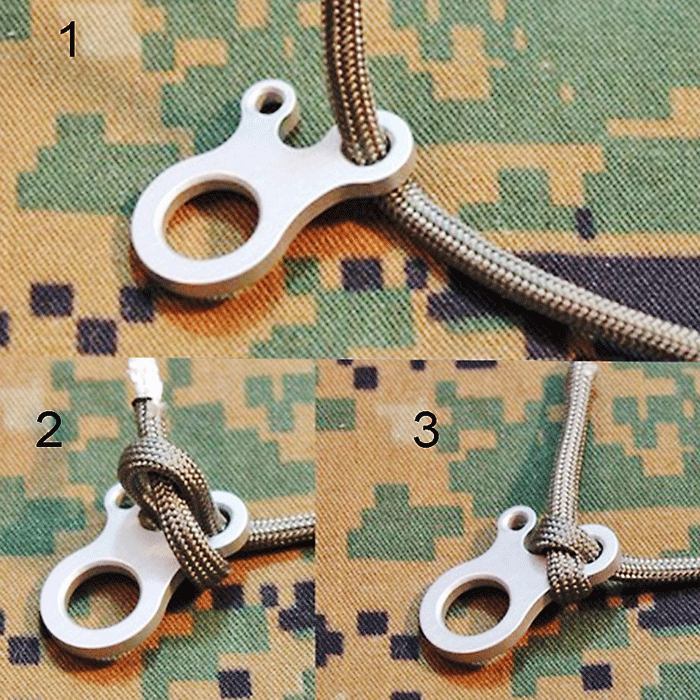 ඉන් අනතුරැව ට්රින්කාවේ විශාල සිදුර පහතට සිටින ලෙස ස්ථානගත කොට ඒ තුළින් කෝඩ් ලණුවේ ඉතිරි වී ඇති ක්රියාකාරී අන්තය රිංගවිය යුතුය. එසේ කිරීමෙන් වස්තුව හා ලණු පොටවල් අතර පරතරය ඔබට අවශ්ය පරිදි වෙනස් කරගත හැකිවෙයි. කඳවුරේ ලන්තෑරැමක් එල්ලා තැබීමට ට්රින්කාවක් ප්රයෝජනයට ගත යුත්තේ රෑපයේ පෙන්වා දී ඇති ක්රමයටය.