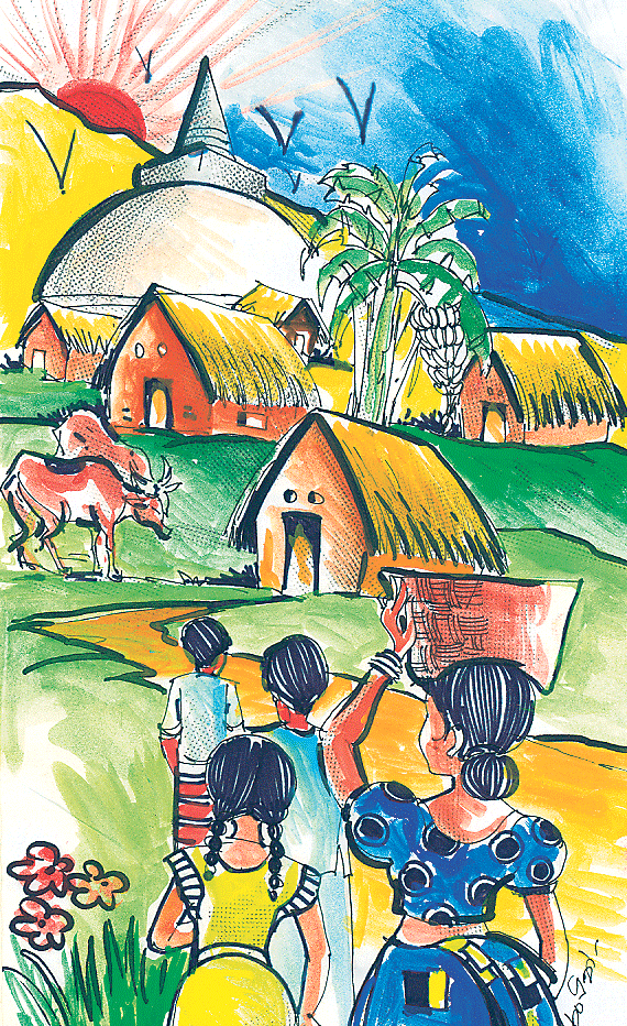 මගේ මිතුරන් සමග එකතුව ඇළටපැන දියබුං ගැසීම තරම් විනෝදයක් මගේ දිවියේ කිසිදා තිබුණේ නැත. මගේ යහළුවන් ඉගෙන ගත්තේ ගමේ පාසලේ ය. මා ඉගෙන ගන්නේ නම් නගරයේ පාසලේ ය. සැමදාම උදෑසන පාසල් යද්දී බසයට නගිනවාත් සමගම මට කිව නොහැකි තරම් දුකක් දැනෙන්නේ ය. එහි තේරැම නම් මා ගමට අසීමිතව ආදරේ බව ය.