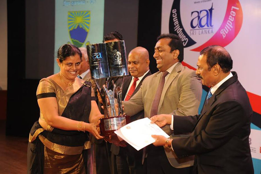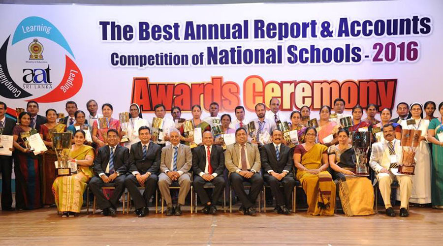 පිළිගත් ගිණුම්කරණ ප්රතිපත්ති යොදාගනිමින් පාසල්වල ඵලදායිතාව ඉහළ නැංවීම සහ ඒ තුළින් පාසල් පද්ධතිය තුළ ගුණාත්මකභාවය වැඩිදියුණු කිරීමේ අරමුණින් අධ්යාපන අමාත්යාංශයත් AAT sri lanka ආයතනයත් එක්ව සංවිධානය කරන ලද ජාතික පාසල් අතර "හොඳම වාර්ෂික වාර්තාව හා ගිණුම්" තේරීමේ තරගාවලියේ සම්මාන ප්රදානෝත්සවය පසුගියදා (11) කොළඹ බණ්ඩාරනායක ජාත්යන්තර අනුස්මරණ ශාලාවේ දී පැවැත්වුණි.