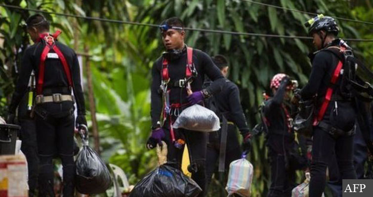 ගලවා ගැනීමේ හෙහෙයුමට අත්දැකීම් සහිත විශේෂඥ කිමිදුම්කරුවන් සහභාගී වූහ. වයස අවුරුදු 11 - 16 ත් අතර පිරිමි ළමුන් සහ ඔවුන්ගේ 25 හැවිරිදි පාපන්දු පුහුණුකරු ජුනි 23 දින වියළි කාලගුණයක් පැවති අවස්ථාවක ලෙනට ඇතුළු වී තිබේ. හදිසියේ ඇද හැලුණු අධික වර්ෂාපතනය නිසා ලෙන තුලට ජල ගැලීම් ඇති වී පිටවීමේ ස්ථානය අවහිර වීම නිසා කණ්ඩායම ලෙන තුළ සිරවිය.