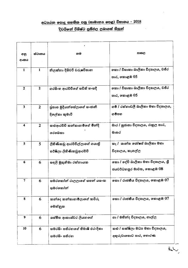 සා.පෙළ විශිෂ්ටයෝ මෙන්න