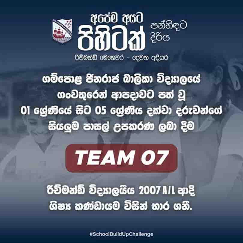 "අපේම අයට පිහිටක්" මනුදම් මෙහෙවරේ දෙවන අදියර ලෙස දැයේ දූ දරුවන්ගේ අධ්‍යාපනයට සවියක් වෙමින් , ගංවතුරෙන් ආපදාවට ලක් වූ ගම්පොළ ජිනරාජ බාලිකා විද්‍යාලය සම්පූර්ණයෙන් ප්‍රතිසංස්කරණය කරදීමේ ක්‍රියාන්විතයේ ප්‍රථම දිනය රිච්මන්ඩ් විද්‍යාලයේ ගරු විදුහල්පති R.S.N.මද්දුම හේවගේ මැතිදුන්ගේ ප්‍රධානත්වයෙන් අද දින එම විද්‍යාල පරිශ්‍රයේදී සාර්ථකව නිමාවට පත්විය.
