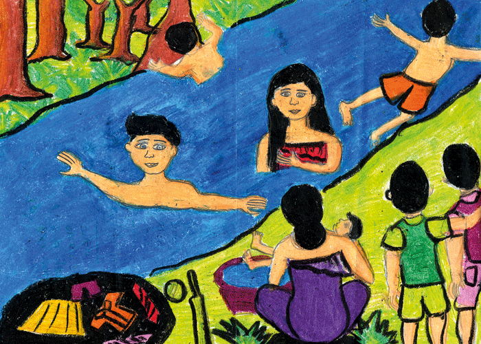 ගං ඉවුරේ දිය නාන පිරිසක්