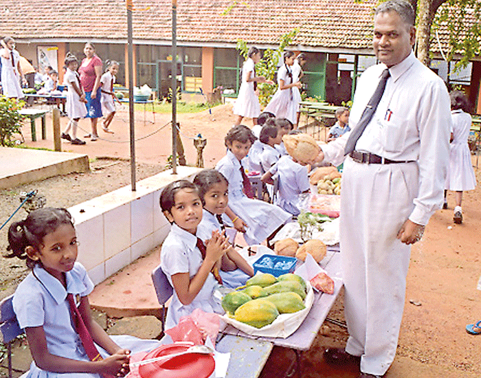විදුහල්පති ඒ. ජයරත්න මහතා සිය විද්යාලයීය ප්රාථමික අංශයේ සිසු දරැ දැරියන් වෙළදාම් කටයුතුවල නියැළි සිටින අන්දම නීරික්ෂණය කළ අයුරැ ඡායාරෑපයෙන් දැක්වේ.