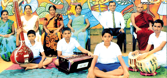 විදුහල්පති ප්රදීප් ජයසිංහ මහතා, නියෝජ්ය විදුහල්පති පූජ්ය පැලවත්තේ සීවලී හිමි සහ සංගීත ආචාරිනි එස්.දිල්රැක්ෂි මහත්මිය සමග නෙත්සර ඇතුළත්මුදලි ශිෂ්යයා ඡායාරෑපයට පෙනී සිටි අයුරැ.