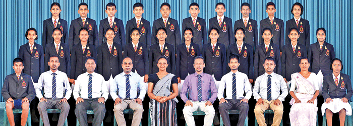 නිල ලාංඡන පැලඳවීමෙන් අනතුරැව විදුහල්පතිනිය , ගුරැ මණ්ඩලයේ කොටසක් හා නවක ශිෂ්යනායක නායිකාවන් ඡායාරෑපයකට පෙනී සිටි අයුරැ.