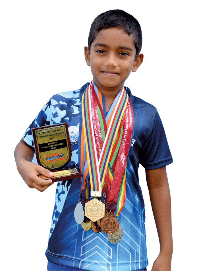 වසය අවුරැදු 11 න් පහළ මීටර් 50 නිදහස් ආර ඉසව්ව , මීටර් 100 නිදහස් ආර , මීටර් 50 ලය ආර ඉසව්ව,මීටර් 100 ලය ආර ඉසව්ව, මීටර් 50 පසුපස ආර ඉසව් වලින් ප්රථම ස්ථානය ලබා ගනිමින් වසය අවුරැදු 11 න් පහළ දක්ෂතම ක්රීඩකයාට හිමි සම්මානය ලබා ගත්තේය.