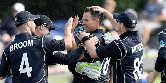 වර්ෂාව හේතුවෙන් තරගයේ ඉනිමක් ඕවර 23 කට සීමා වූ අතර ජයග්රහණය සඳහා ලකුණු 166 ක ඉලක්කයක් හඹාගිය කොදෙව් කණ්ඩායමට ඕවර 23 අවසානයේ කඩුලු 9 ක් දැවී රැස්කරගත හැකි වූයේ ලකුණු 99 ක් පමණි. එහිදී දක්ෂ පන්දු යැවීමක නිතර වූ ටේ්රන්ට් බෝල්ට් සහ මිචෙල් සෑන්ට්නර් කඩුලු 3 බැගින් දවාගනිමින් කොදෙව් කණ්ඩායමේ ජයග්රාහී මාවත අවහිර කළහ.