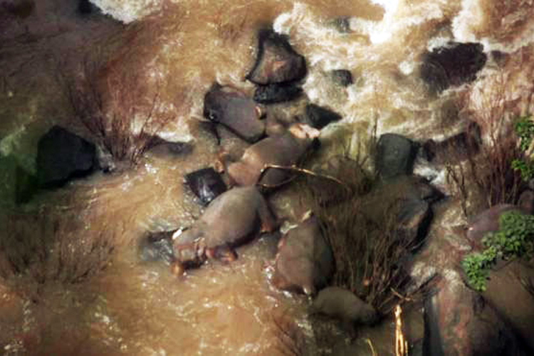 අලි රංචුවක් දියඇල්ලේ ජලය ගලන මාර්ගයේ බාධකයක් නිර්මාණය වන සේ පේළියට සිටින බව වනෝද්යාන නිලධාරීන්ට ආරංචි වී ඇති අතර, පසුව අවුරුදු 3ක පමණ අලි පැටවකුගේ මළ සිරුරක්ද, තවත් අලි පස්දෙනෙකුගේ සිරුරුද පාවෙමින් තිබියදී සොයාගැනිනි. තවත් අලි දෙදෙනෙකුගේ සිරුරු සොයමින් පවතින බවද බලධාරීහු පැවසූහ. ශෝකය පළකිරීමේ සංඥා නිකුත් කර සත්වයකු ලෙස අලි නම්කෙරේ.